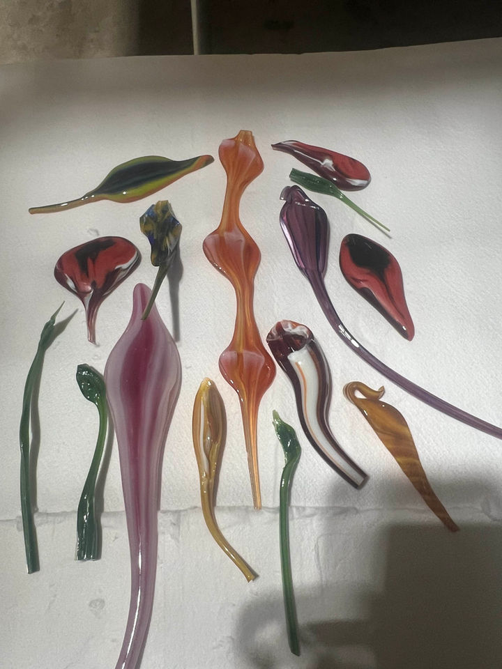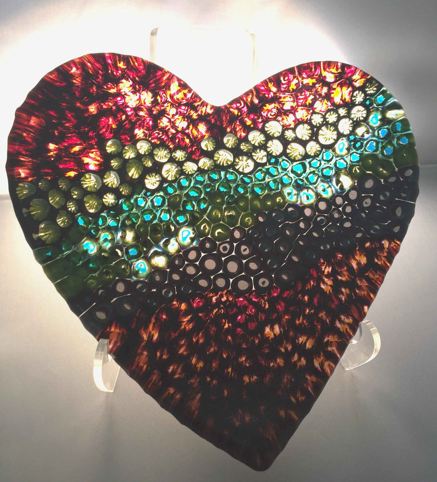 I have a vitrigraph kiln and create much of my own cane. A vitrigraph kiln is used for the process of heating glass in a small receptacle and allowing the glass to flow out of the bottom of a pot through the bottom of the kiln. I create my own stainless steel containers and speciality bottom plates.